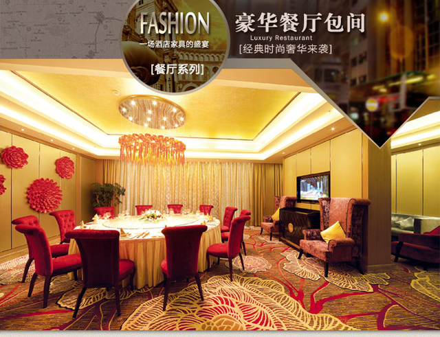 產(chǎn)品簡介:酒店家具豪華餐廳包間,餐廳包間桌椅組合,專業(yè)定制各種豪華酒店家具,精裝豪宅家具等并提供裝飾設(shè)計。